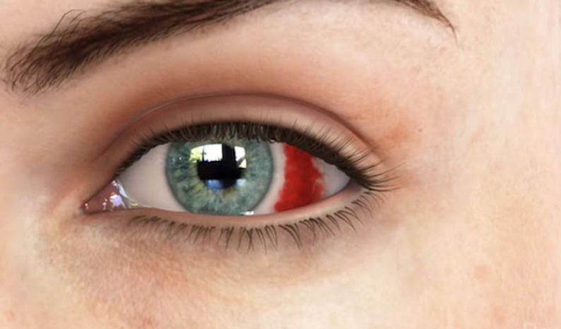 홍채, 동공 앞에 보이는 혈액