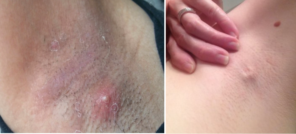 증상으로는 붉은색의 여드름 같은 종기, 고름이 차면서 겨드랑이 주변에 통증이 생기고, 노란 고름과 함께 가려울 수 있습니다. 이런 경우 다시 병원에 가서 치료를 받으셔야 합니다.
